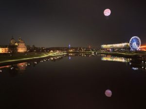 Moon over Florianska Str., Kraków, 2019.