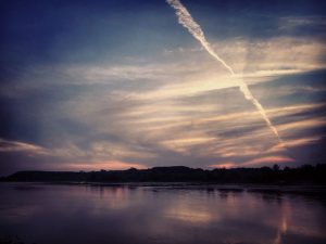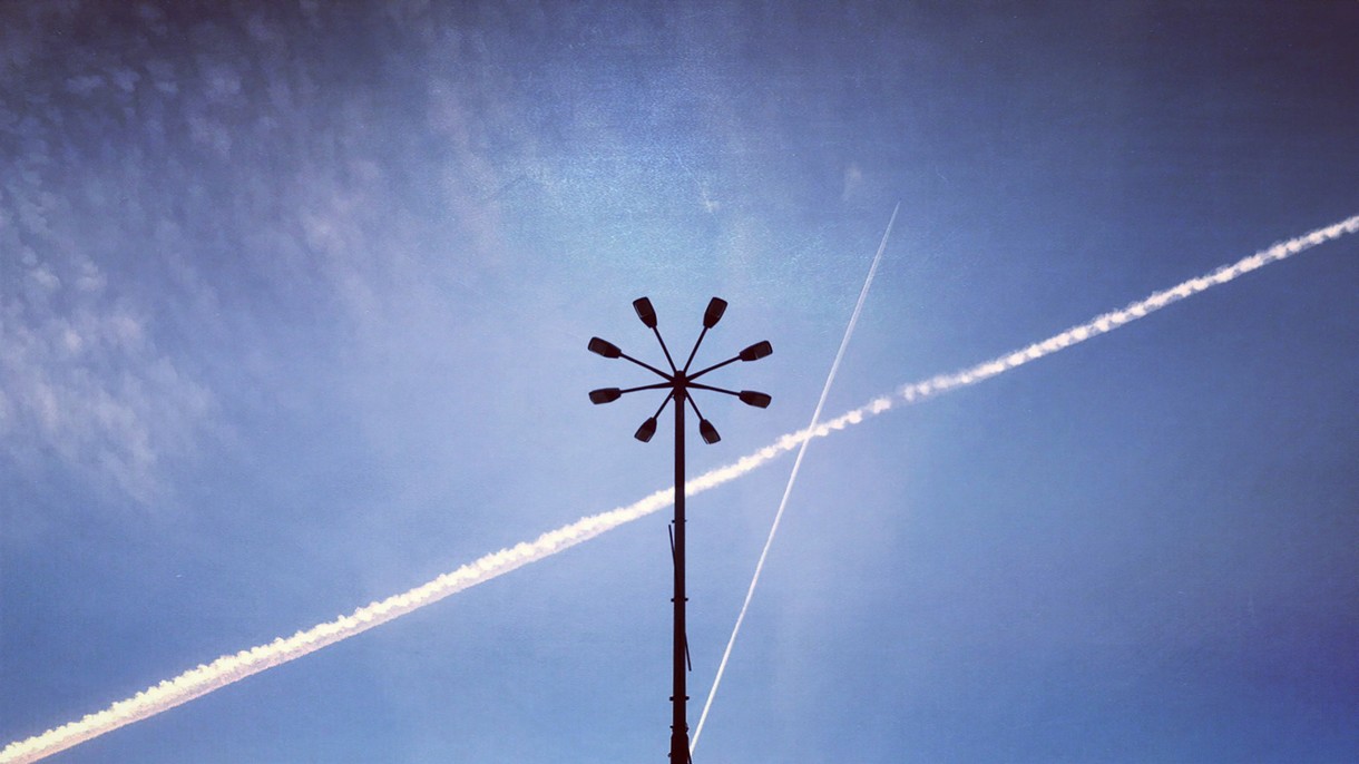 Lamp and contrails, Poznań, 2019.